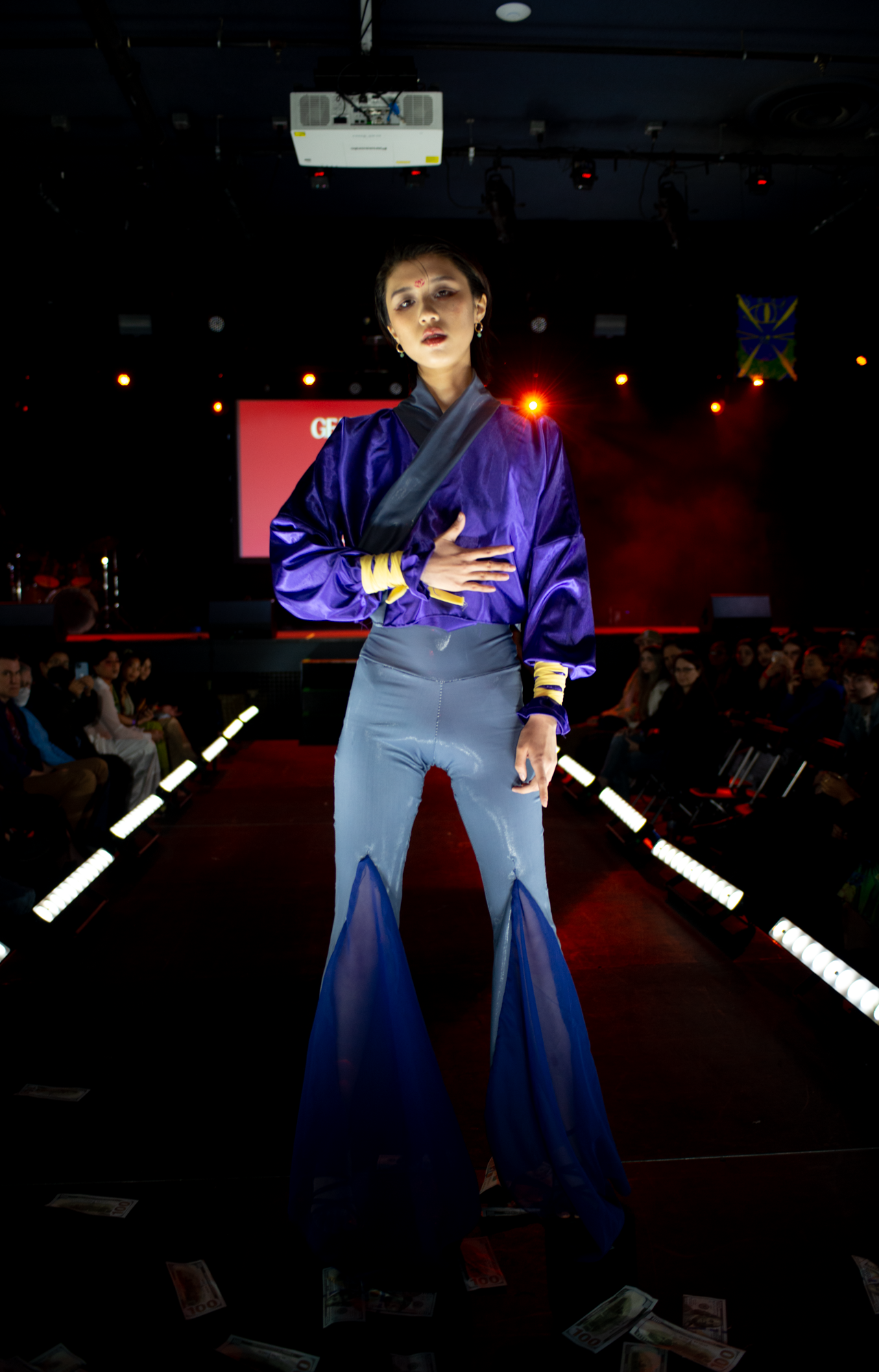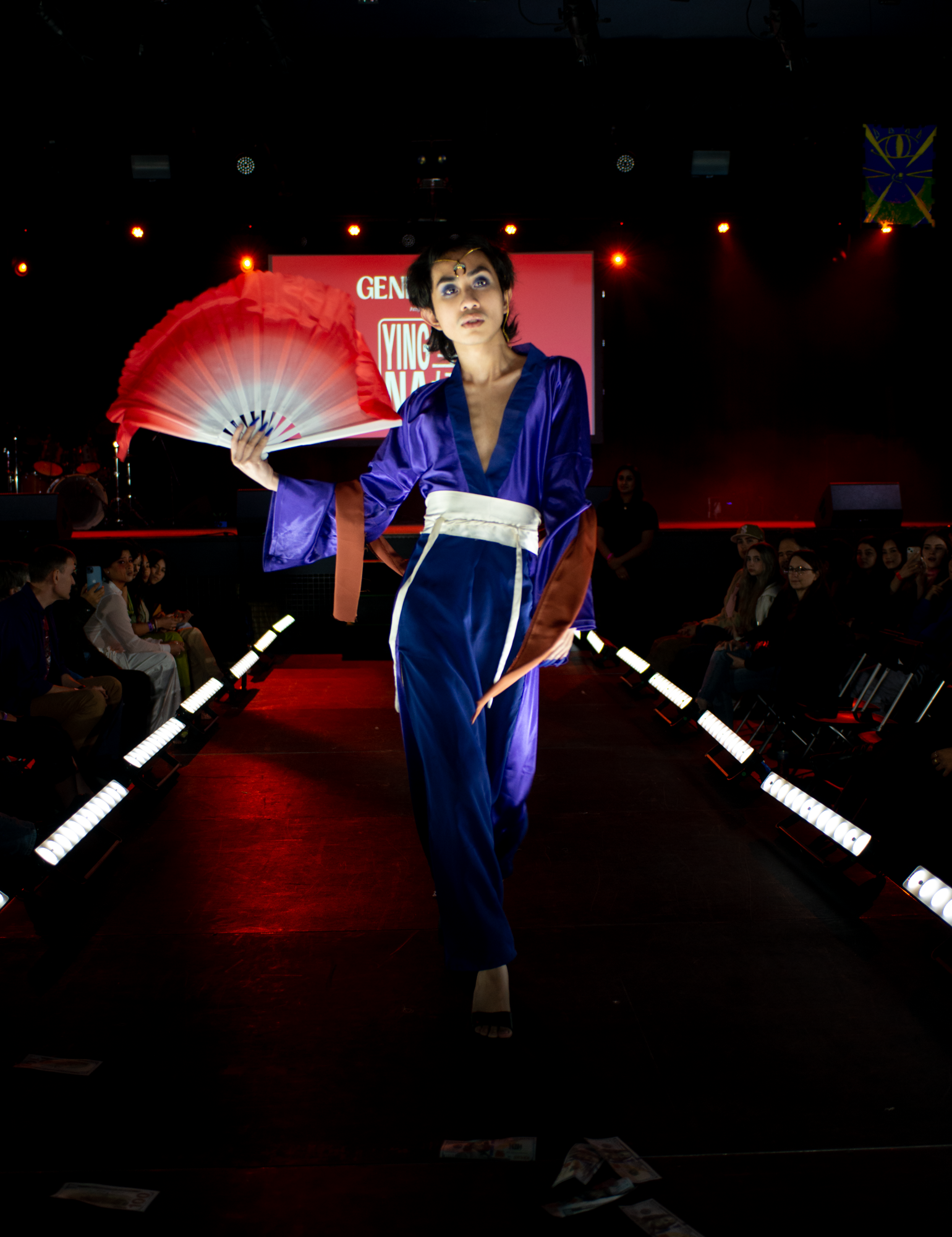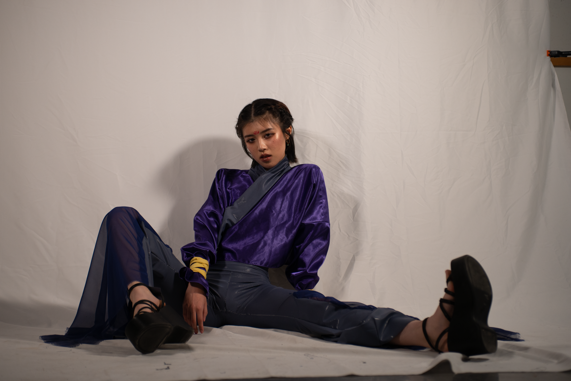 GENESIS · 初 is an exploration of my connection to Chinese culture. This collection was inspired specifically by the Tang Dynasty, an era of prosperity and gender equality. Using the same textiles for all the pieces, the pieces build off of each other and combine both Yingna's Eastern heritage and Western upbringing.